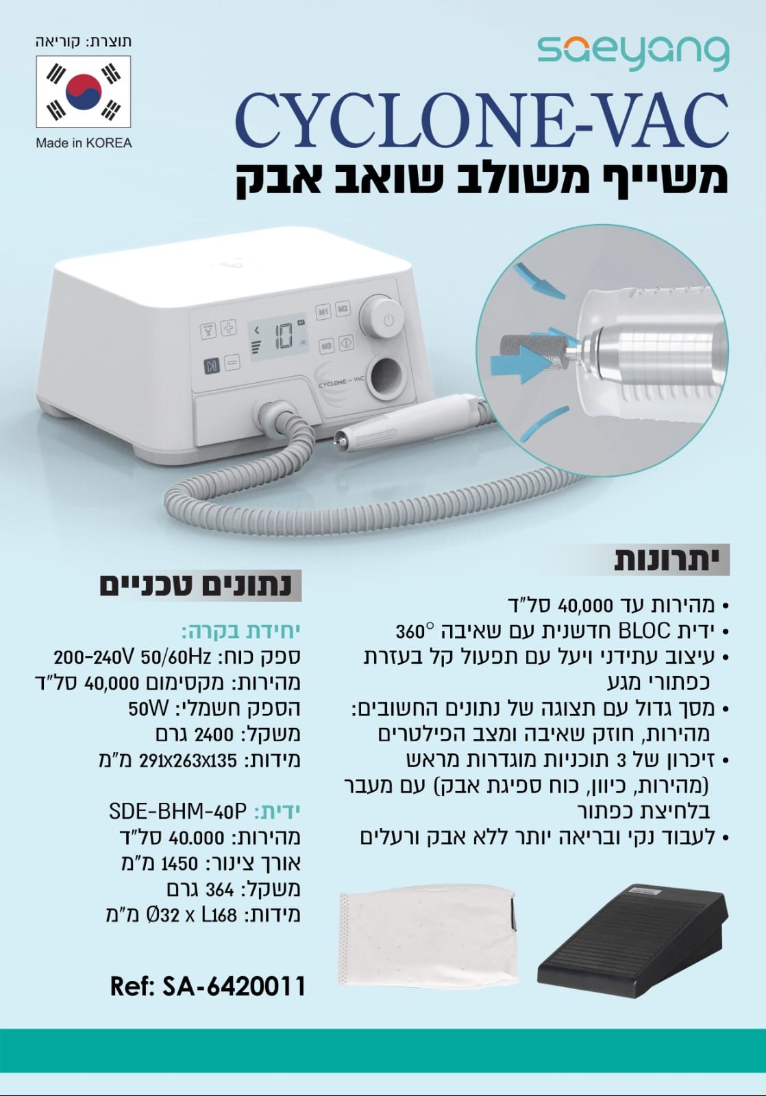 פעולת שאיבה משופרת – CYCLONE-VAC יכול להגדיר את עוצמת השאיבה ב-5 שלבים, ולמזער את האבק שנוצר במהלך העבודה.